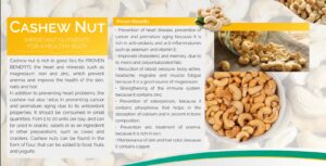 Cashew nut is rich in good fats for PROVEN BENEFITS the heart and minerals such as magnesium, iron and zinc, which prevent anemia and improve the health of the skin, nails and hair. In addition to preventing heart problems, the cashew nut also helps in preventing cancer and premature aging due to its antioxidant properties. It should be consumed in small quantities, from 5 to 20 units per day, and can be used in snacks, salads or as an ingredient in other preparations, such as cakes and crackers. Cashew nuts can be found in the form of flour, that can be added to food, fruits and yogurts.
