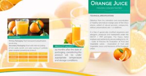 Obtained from the extraction and concentration of healthy and mature orange juice of the Citrus sinesis, added of natural aromatic compounds, without preservatives and / or additives. It is free of genetically modified organisms and allergens, produced and maintained under the HACCP / PRP principles. The heavy metal residues and authenticity are according to A.I.J.N. – Code of Practice for Evaluation of Fruit and Vegetable Juices – Association of Fruit and Vegetable Juices and Nectaries of the European Union.